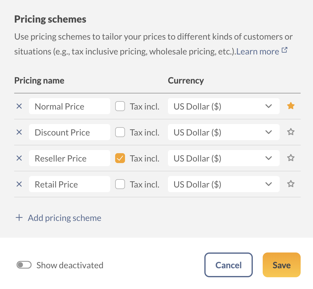 - Select the star icon next to the pricing scheme that should be the default in inFlow.