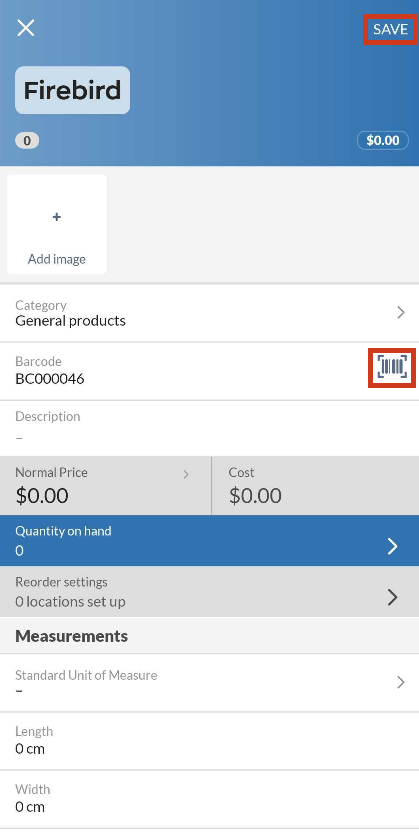3. Scroll down to the barcode field and tap the barcode icon.