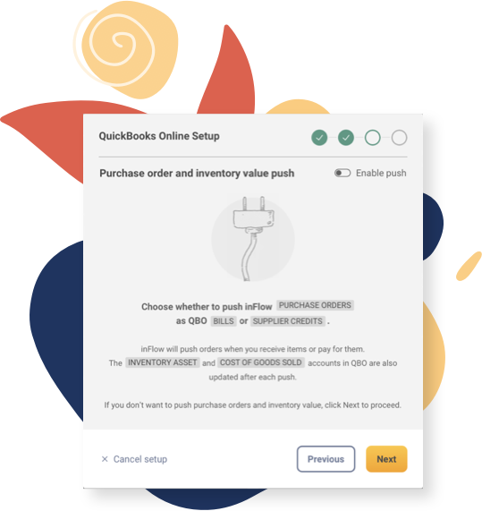 Say goodbye to manually entering orders into purchase order software and then sending those same orders to your accountant. Just connect inFlow to QuickBooks Online or Xero and we’ll push the relevant data to the right account.