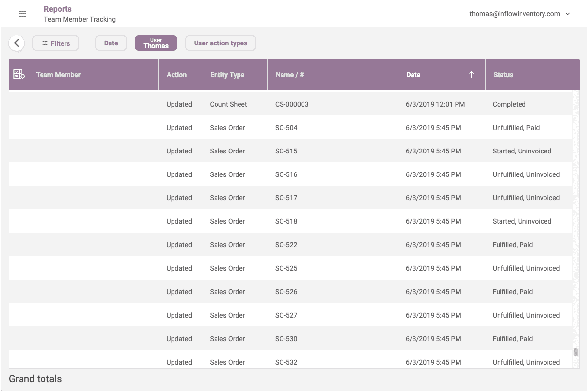 Allows you to track changes made by inFlow team members. Useful for internal reviews and audits.