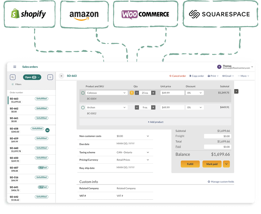 Most sales systems feature inventory as an add-on, but we built inFlow with inventory tracking and the entire sales workflow at its core. This deep integration improves communication between your teams and helps you get orders out faster.